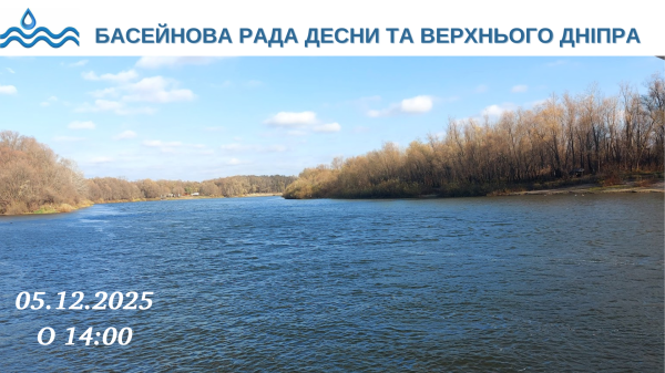 05 грудня 2025 року о 14:00 відбудеться позачергове онлайн засідання басейнової ради Десни та верхнього Дніпра.