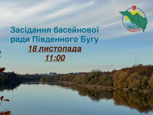18 листопада 2025 року об 11:00 (реєстрація з 10:30) відбудеться чергове засідання басейнової ради Південного Бугу у форматі відеоконференції у Google Meet з дотриманням умов воєнного стану.